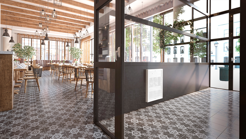 L'aéroconvecteur OAWH procure rapidement de la chaleur dans les endroits affectés par les courants d'air froid. Ce devant en aluminium, résistant à la corrosion, est offert en plusieurs couleurs. L'apparence de l'ensemble du fini ne changera pas avec le temps. Le contrôle est caché pour éviter la manipulation. Alimenté par un moteur fermé lubrifié en usine, il souffle de l'air chaud en bas pour créer une circulation d'air.