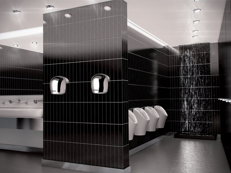 Avec sa technologie à jets d'air chaud multiples soufflés à haute vitesse, le sèche-mains AirForceTM sèche complètement vos mains en seulement 12 secondes!